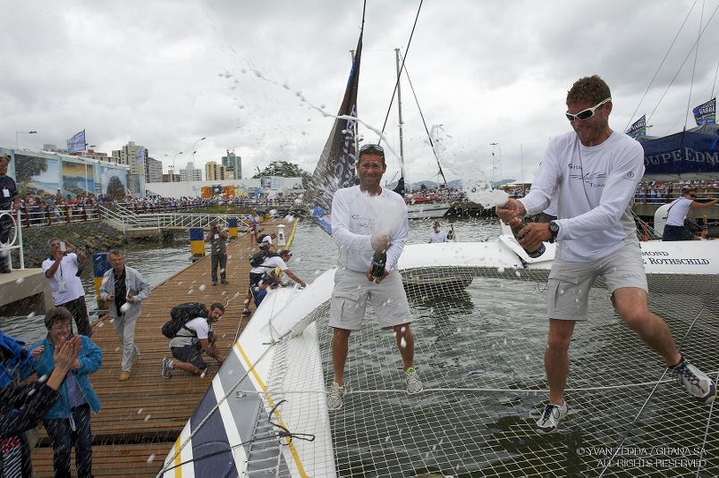 Le 17 novembre au matin, les bateaux empannent pour aller négocier le Cap Frio, dans l’Ouest duquel se niche la baie de Rio de Janeiro. A 500 milles de l’arrivée sur Itajaí, Sébastien et Charles ont retrouvé une cinquantaine de milles d’écart avec leurs poursuivants, autant dire que la pression reste grande quand on connaît la vitesse de ces bateaux. Il ne faut donc pas ralentir, éviter les pièges et pourtant, ils seront nombreux. En effet, un front dépressionnaire associé à une excroissance de l’anticyclone de Sainte-Hélène se dresse devant les étraves. Grâce à leur travail d’anticipation effectué avec leurs routeurs, les marins du Gitana Team gèrent la situation en métronomes et emportent la mise sur la ligne d’arrivée !