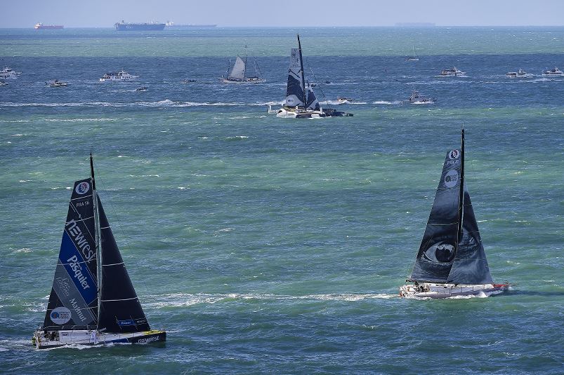 En Manche, tant l’angle du vent que sa force, ou encore l’état de mer, pourraient sembler idéaux pour faire parler la poudre, mais Sébastien Josse et Thomas Rouxel ont choisi d’aborder cette entame de régate dans un tout autre état d’esprit, avec disons une vision à plus long terme : « Une vingtaine de nœuds, 1,5 à 2 mètres de mer et vraisemblablement un long bord vent de travers pour aller jusqu’à Ouessant avec quelques changements de voiles d’avant au programme. Sur le papier, les conditions seraient là pour aligner d’entrée des moyennes autour de 40 nœuds. Mais entre le trafic maritime, la proximité avec les côtes, la négociation des DST, on trouve que ça ne serait ni raisonnable ni malin en début de course.»