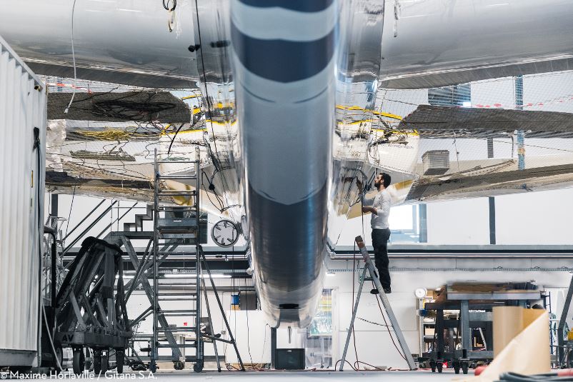 Depuis la fin de sa construction et sa toute première mise à l’eau, le 17 juillet 2017, tout a été très vite pour le Maxi Edmond de Rothschild. Les six premiers mois d’activité de ce géant de 32 mètres ont en effet été rythmés comme en témoignent les 15 000 milles parcourus ou encore les deux transatlantiques dont une en course qui s’est soldée par la 2e place de Sébastien Josse et Thomas Rouxel sur la Transat Jacques Vabre. Pour ce premier chantier d’hiver, l’équipe technique dirigée par Pierre Tissier avait à cœur de réviser l’ensemble de la plateforme, de réparer les pièces usées ou abîmées mais également d’améliorer certains systèmes grâce aux retours d’expériences des navigations de l’année passée : « Fiabilisation et optimisation ont été sans conteste les maîtres mots de ce premier refit. Les appendices ont constitué le gros du dossier hivernal, je dirais près de 70 % de notre temps et pas moins de cinq personnes à temps plein. C’est la nouveauté avec cette nouvelle génération de maxi-trimaran volant. Notre priorité a été la réparation des foils cassés durant la Jacques Vabre. Nous avions identifié des problèmes mécaniques autour de ces deux pièces maîtresses et nous espérons que ce défaut de conception est désormais derrière nous. Tous les plans porteurs ont été démonté, révisé et optimisé. L’hydraulique et le circuit associé ont également demandé pas mal de temps. Nous avons en effet amélioré tout le système de pompes et de vérins grâce à une précieuse collaboration avec Harken, avec qui nous travaillons étroitement depuis la conception du Maxi.»